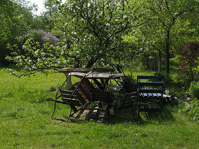 Zu unseren Vorstellungen von ökologischem Gärtnern gehören nach wie vor: Verzicht auf Chemie, das Anpflanzen einheimischer Bäume und Sträucher, konsequente Naturschutzmaßnahmen, kein Strom oder Verbrennungsmotoren. Elektrische Rasenmäher oder Sägen bleiben draußen und nachts leuchtet nur der Mond.